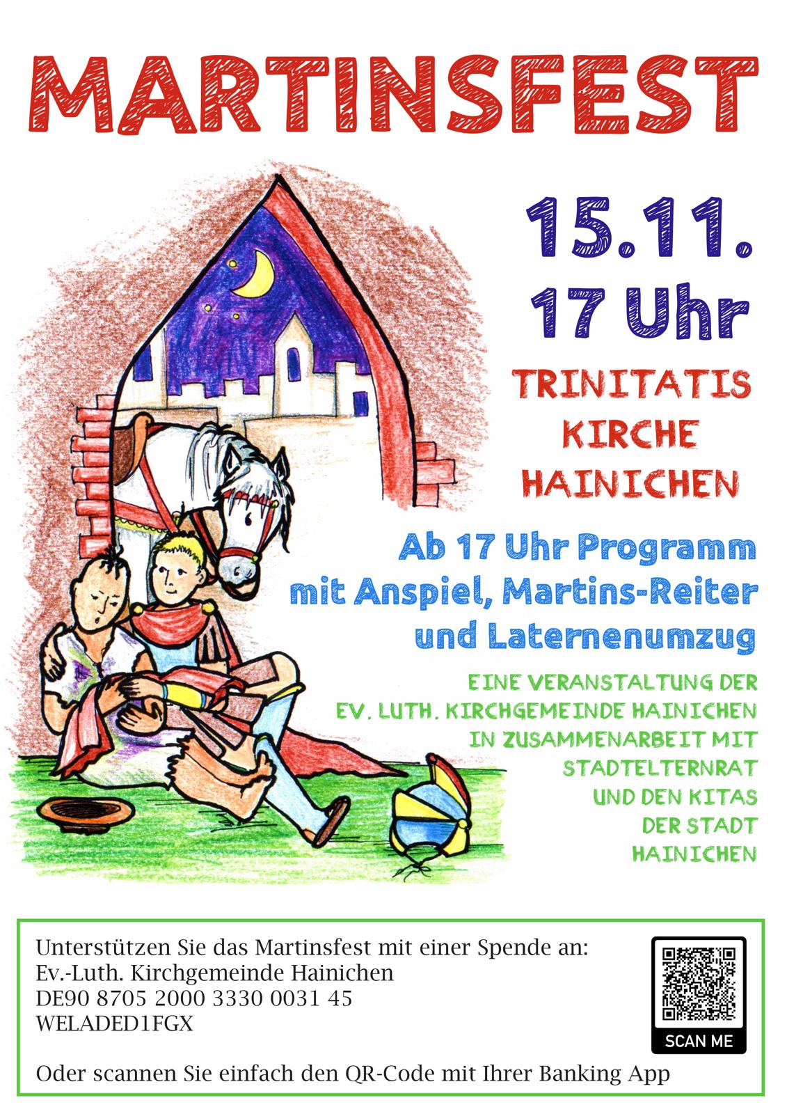 17 Uhr Beginn mit Anspiel in der Kirche und Martins-Reiter. Anschließendem findet der traditionelle Laternenumzug statt.