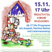 17 Uhr Beginn mit Anspiel in der Kirche und Martins-Reiter. Anschließendem findet der traditionelle Laternenumzug statt.